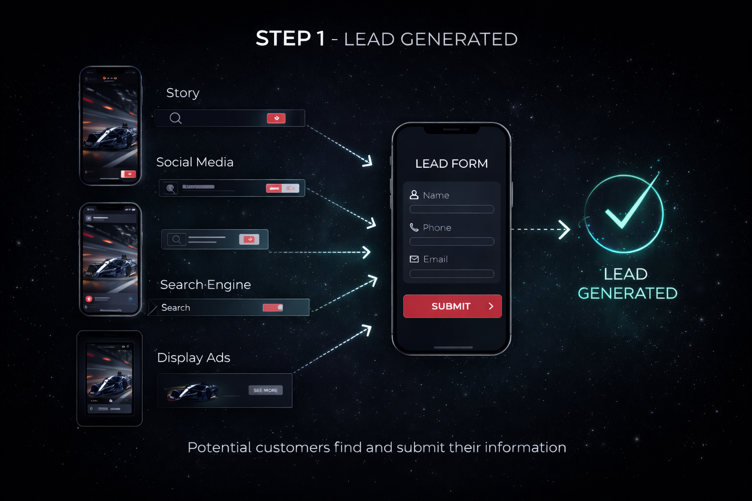 The system is built around your inventory and creates a structured lead engine for your vehicles.